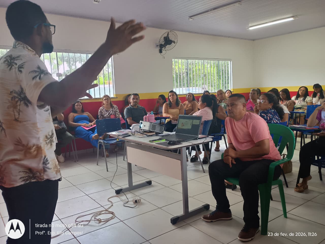 A programação foi marcada pela Formação do Eixo Gestão, conduzida pelos formadores Profº Rosinaldo Ribeiro e Profº Elinalva Campos, que desenvolveram a temática "Gestão de Processos das Rotinas e das Práticas Sustentáveis". O encontro proporcionou reflexões técnicas sobre organização institucional, padronização de fluxos de trabalho, eficiência administrativa e fortalecimento das práticas pedagógicas sustentáveis no cotidiano das unidades escolares.